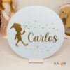 Placa de madera con un diseño dulce en tonos pastel y dorado, que aportará paz y ternura a la habitación.