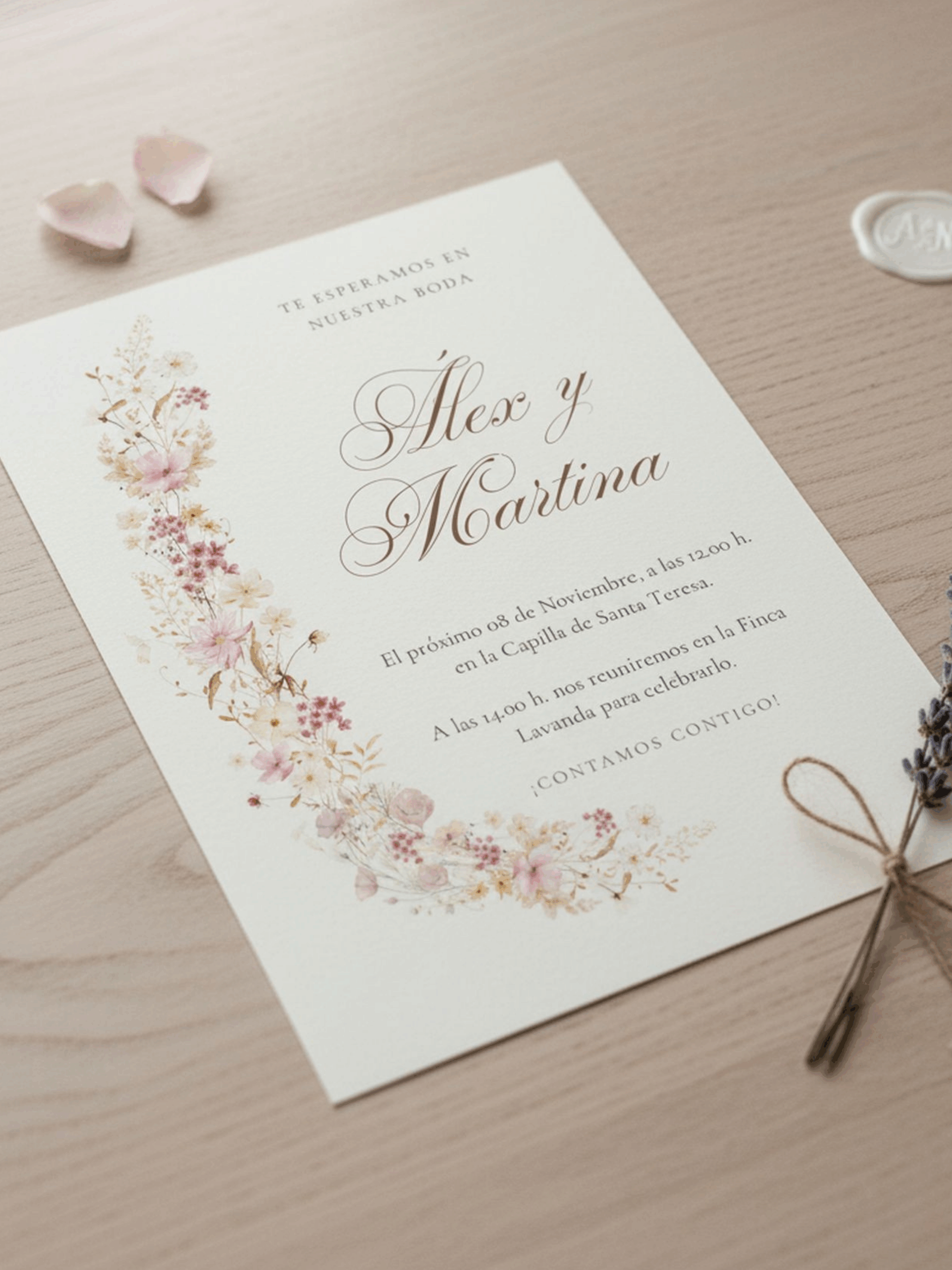 Te mostraremos una prueba de las invitaciones de boda y no se imprimirán hasta que tengamos tu conformidad.