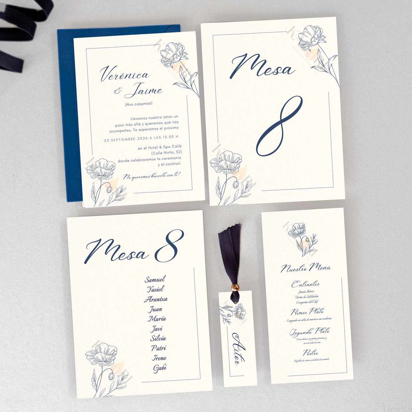 Puedes ver el resto de «papelería a juego» pinchando en el siguiente enlace: https://kalari.es/producto/pack-de-papeleria-de-boda/