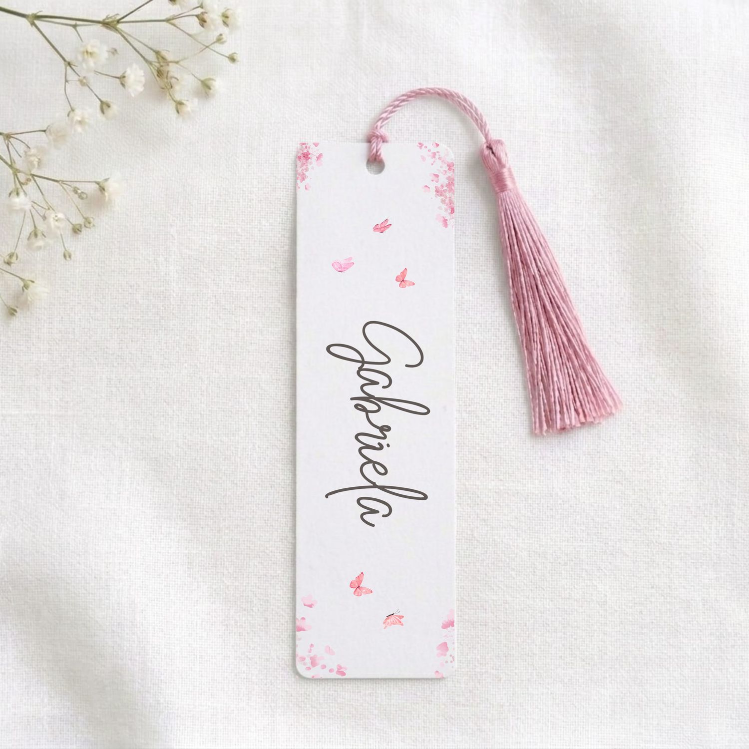 Cada invitado puede recibir su marcapáginas con su propio nombre, creando un detalle único, cercano y especialmente pensado para cada persona.