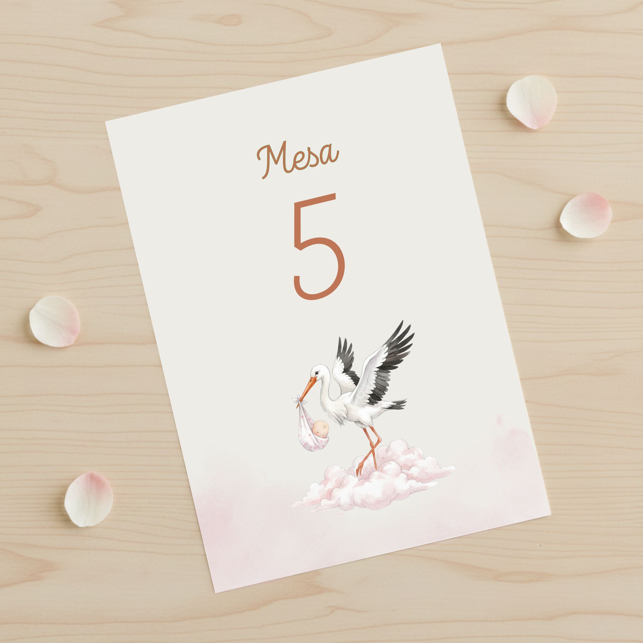 Este número de mesa infantil, personalizado, con hermosa ilustración de una cigüeña sosteniendo con ternura a un bebé, está pensado para celebraciones de bautizo, baby shower y eventos familiares con un enfoque dulce y delicado. Su diseño transmite ternura y cuidado en cada detalle, ayudando a organizar las mesas de forma clara sin perder la estética infantil del conjunto. Es una pieza que acompaña al resto de la papelería del evento, aportando coherencia visual y creando una decoración cuidada y armoniosa para un día tan especial.