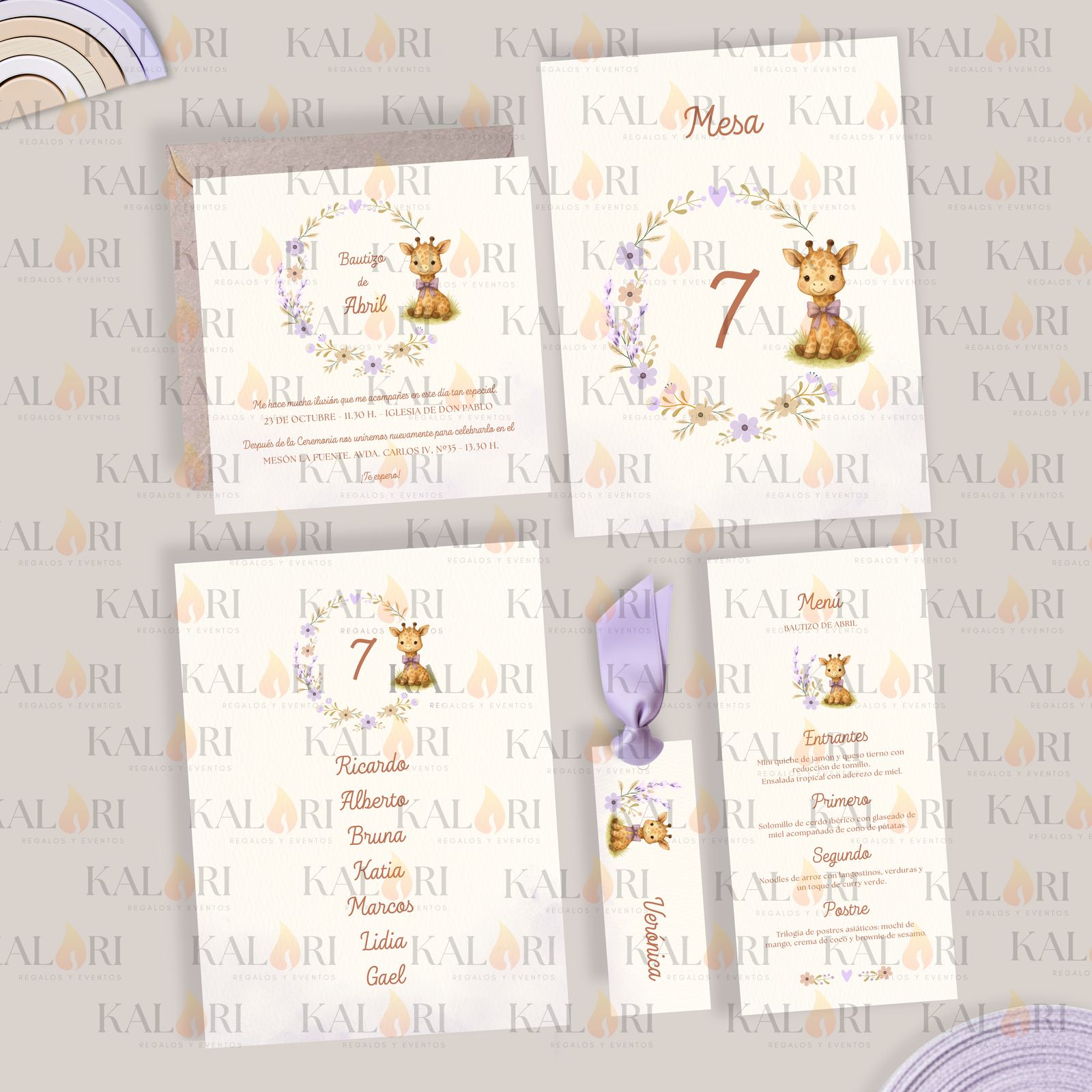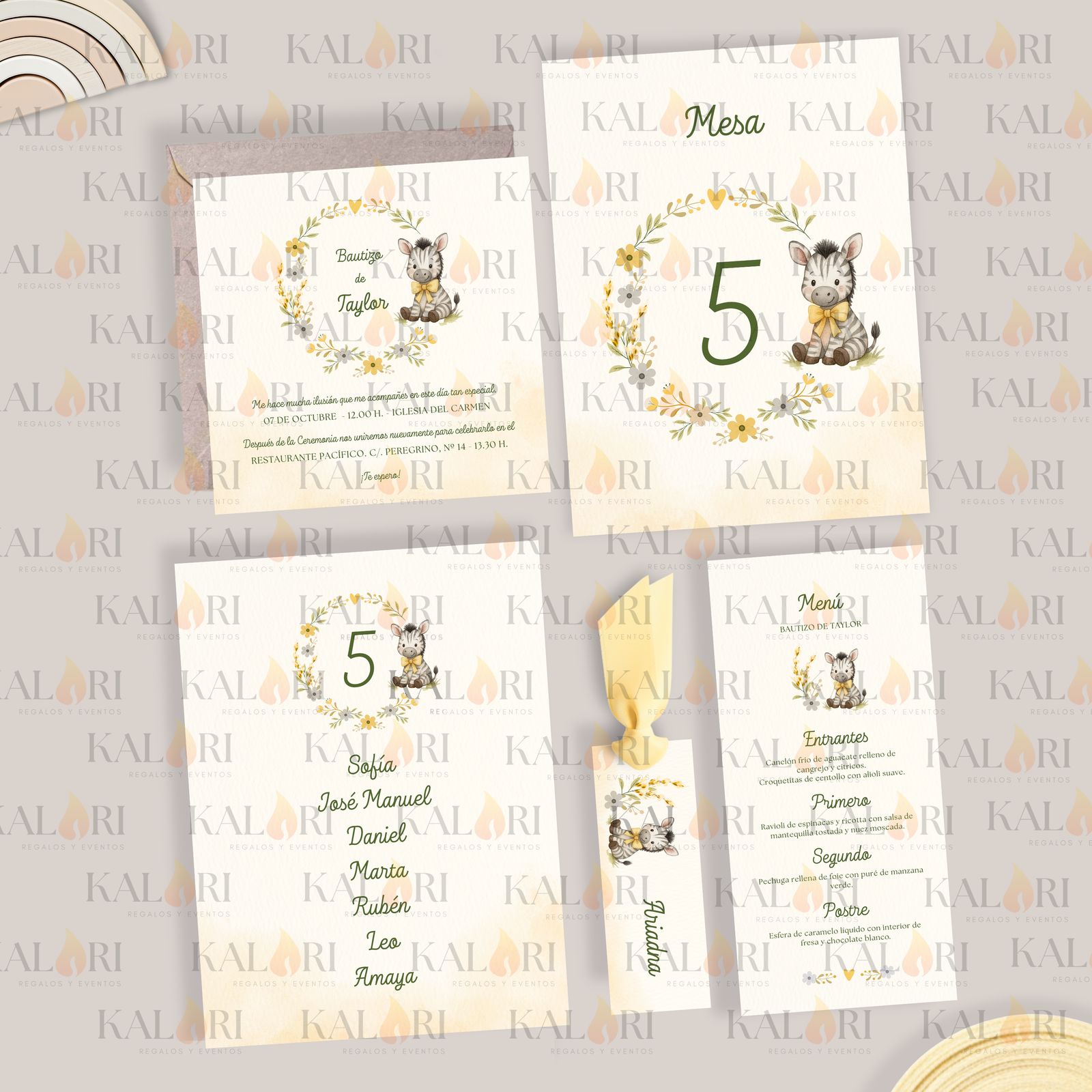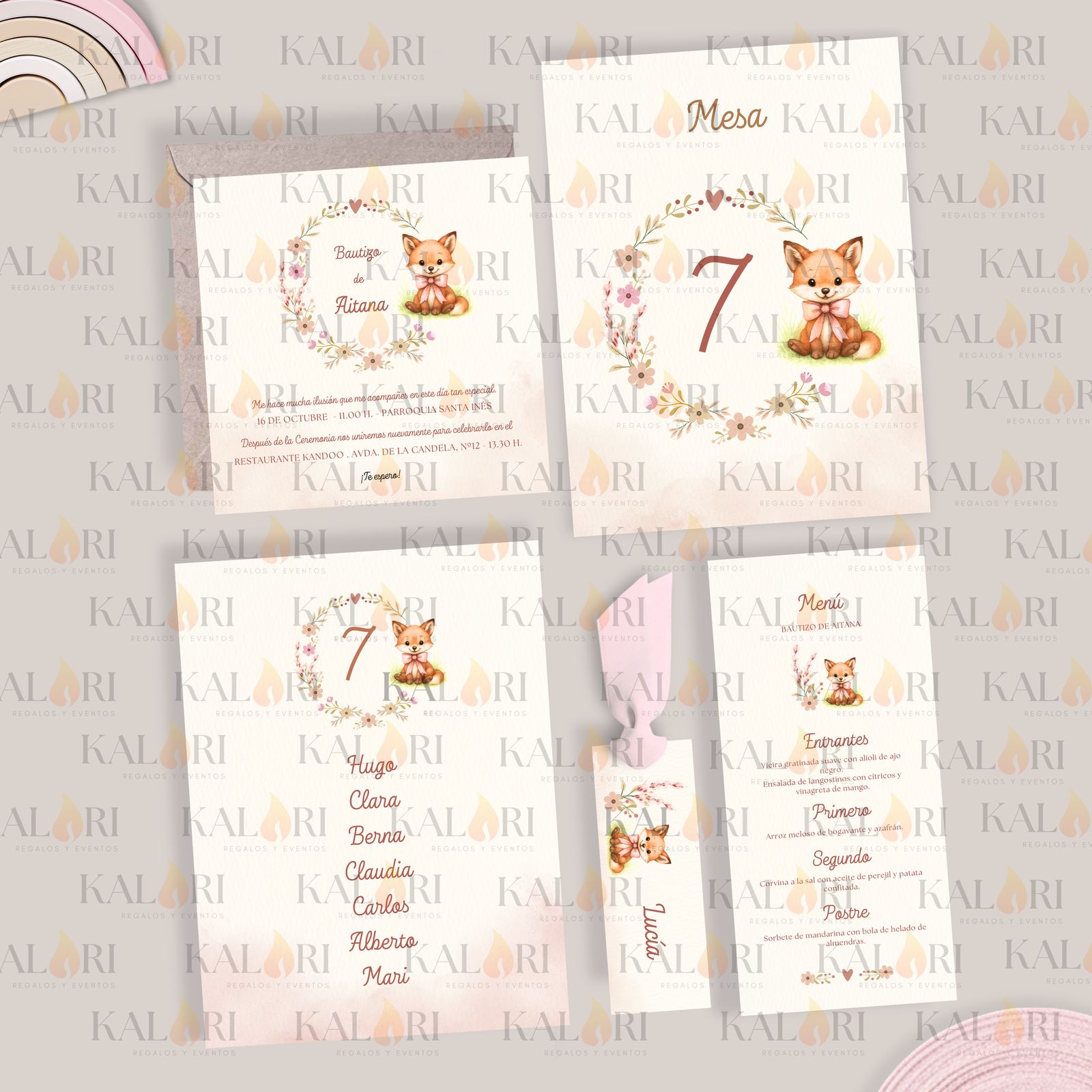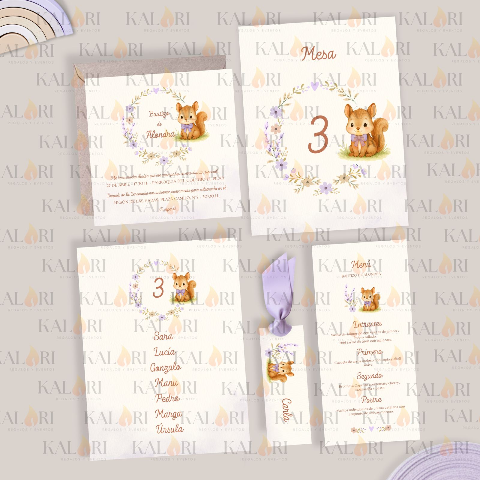 - Nuestros logos sobre las imágenes de cada pack de papelería infantil son una marca de agua para proteger los diseños, ya que son propiedad de Kalari. En las tarjetas que recibe el cliente, éstos no aparecen.