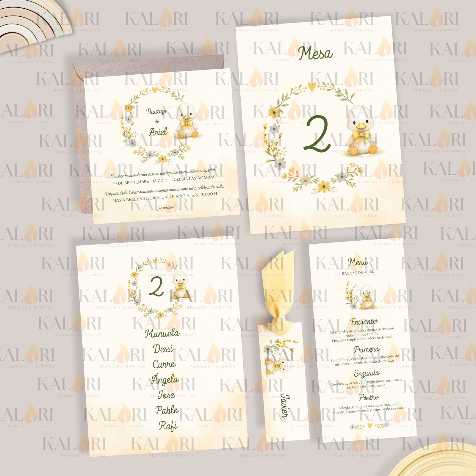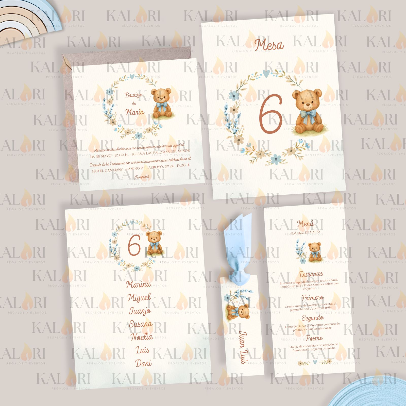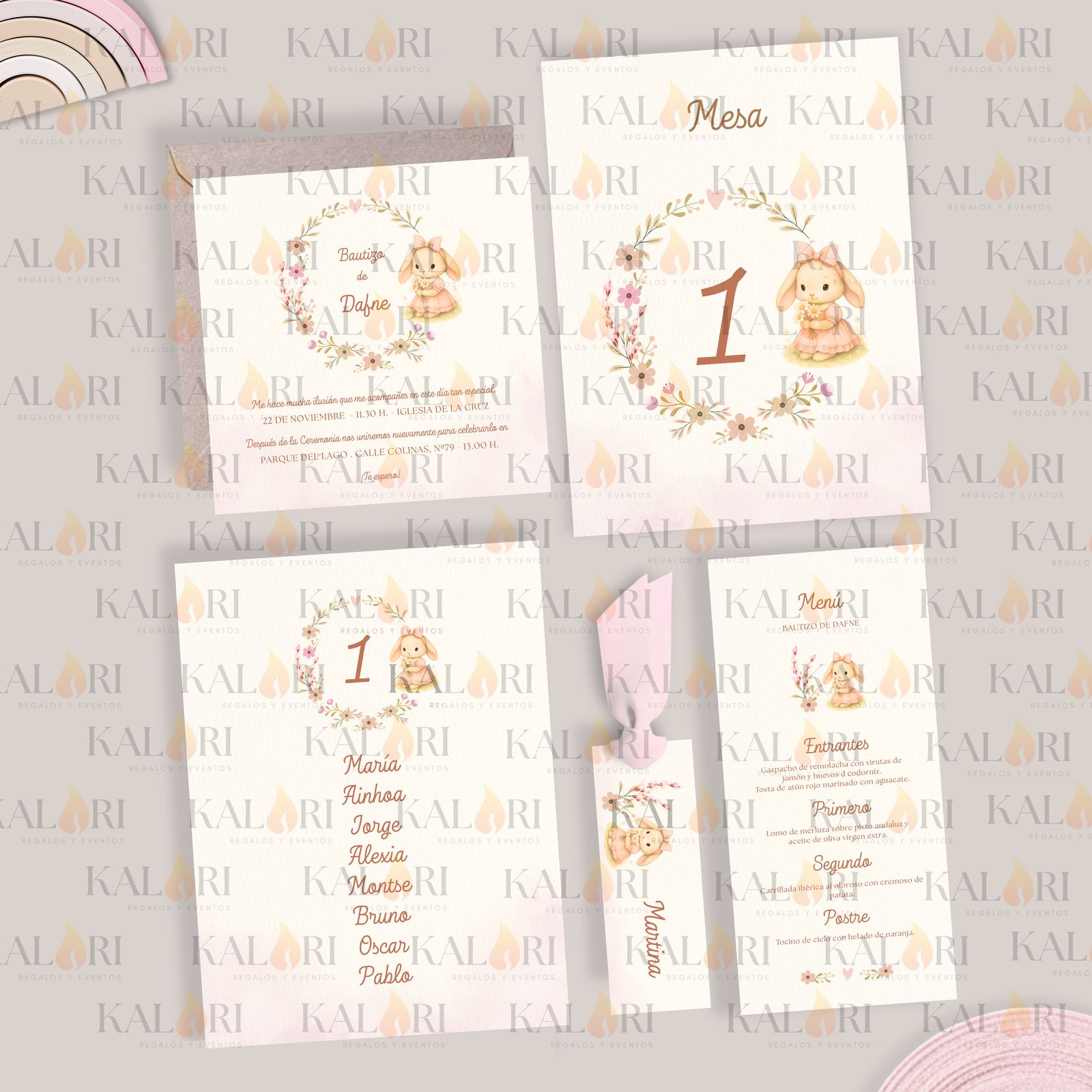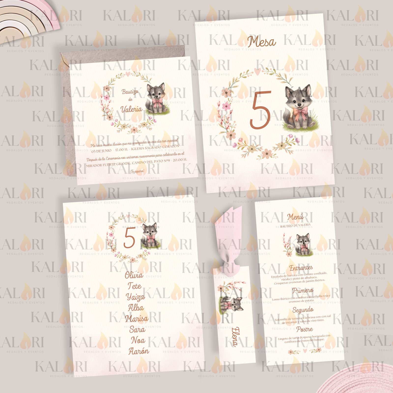 - Nuestros logos sobre las imágenes de cada pack de papelería infantil son una marca de agua para proteger los diseños, ya que son propiedad de Kalari. En las tarjetas que recibe el cliente, éstos no aparecen.