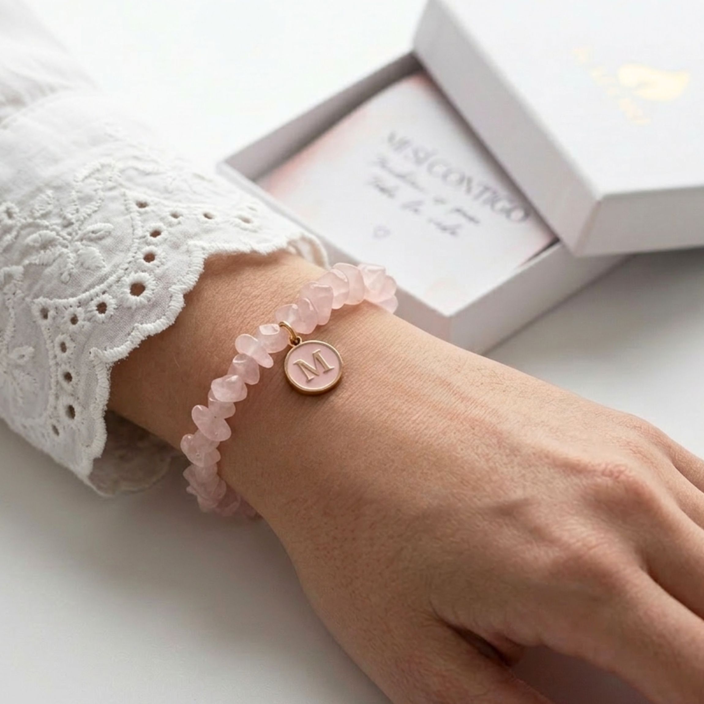 ✨ Pulsera Atabey · Cuarzo rosa. Pulseras para invitadas de boda.