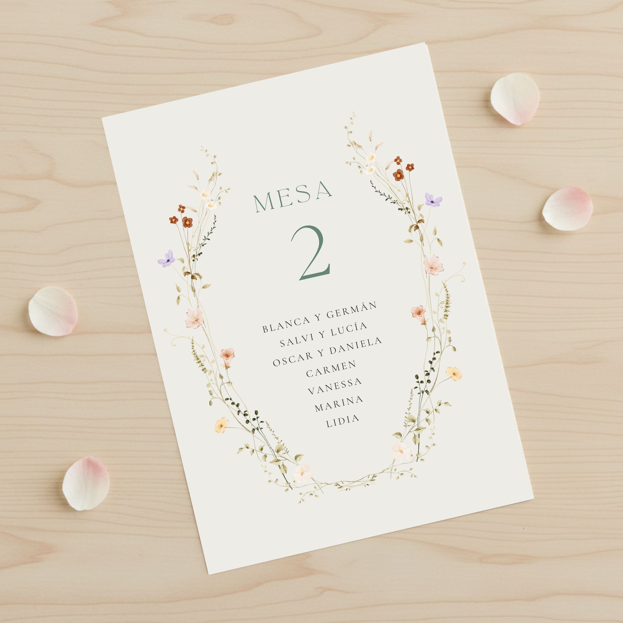 El seating plan modelo Floral se personaliza con los nombres de los invitados y la distribución de mesas, adaptándose al número de asistentes y al estilo del evento, ya sea una boda o una celebración especial. Puede combinarse con otros elementos de papelería a juego (minutas de menú, números de mesa, tarjetas de asiento…) para lograr una imagen coherente, elegante y cuidada en toda la celebración. Disponible en blanco y beige, según el estilo elegido.