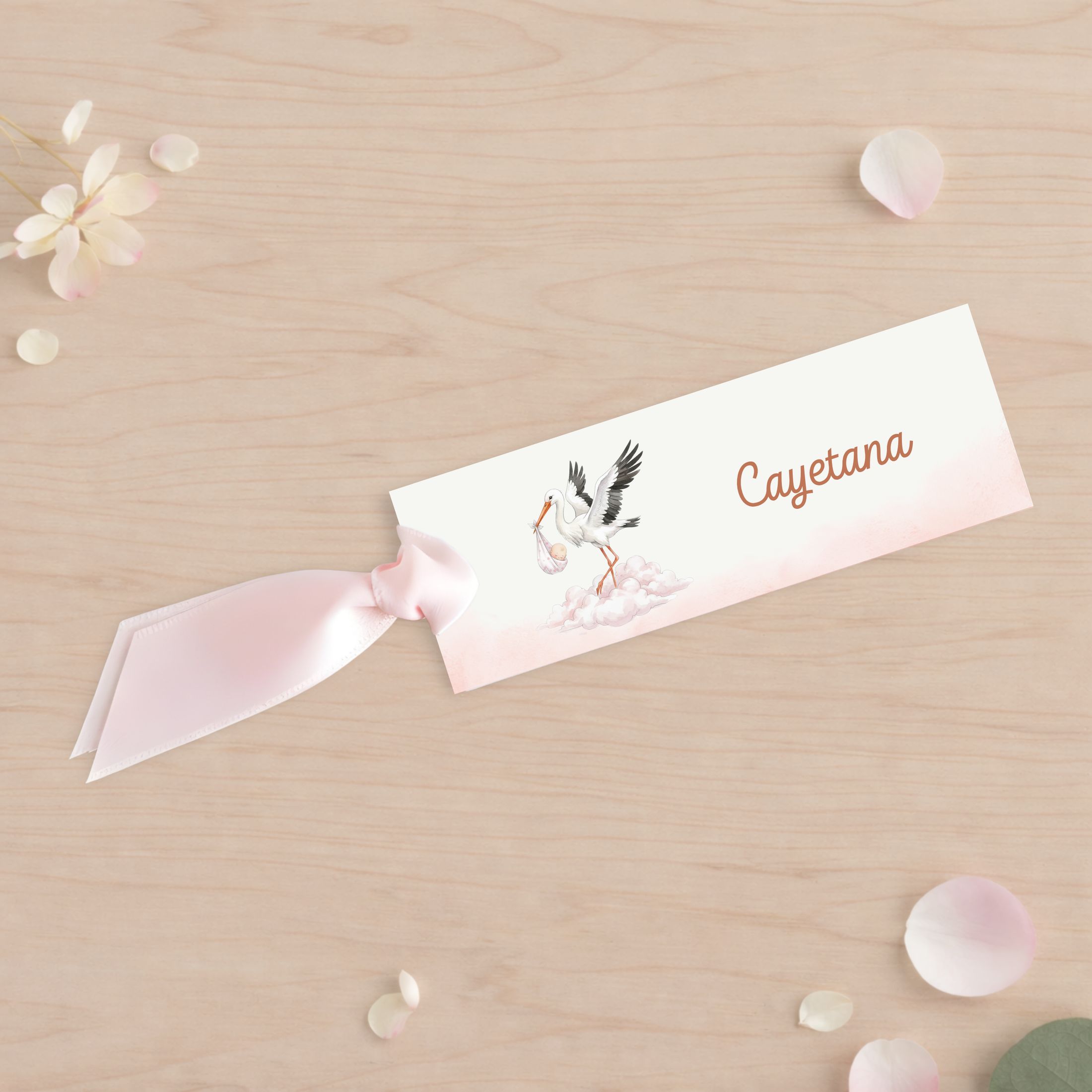 La tarjeta de asiento Modelo Cigüeña personalizada está pensada para organizar a los invitados de forma clara y delicada en celebraciones de bautizo y eventos infantiles. Su diseño cuidado, con ilustraciones suaves y colores armoniosos, la convierte en un elemento funcional y decorativo dentro de la mesa.