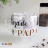 A un papá amante del café no le puede faltar esta preciosa taza de de cristal, con asa, doble fondo y línea moderna, decorada especialmente para él!