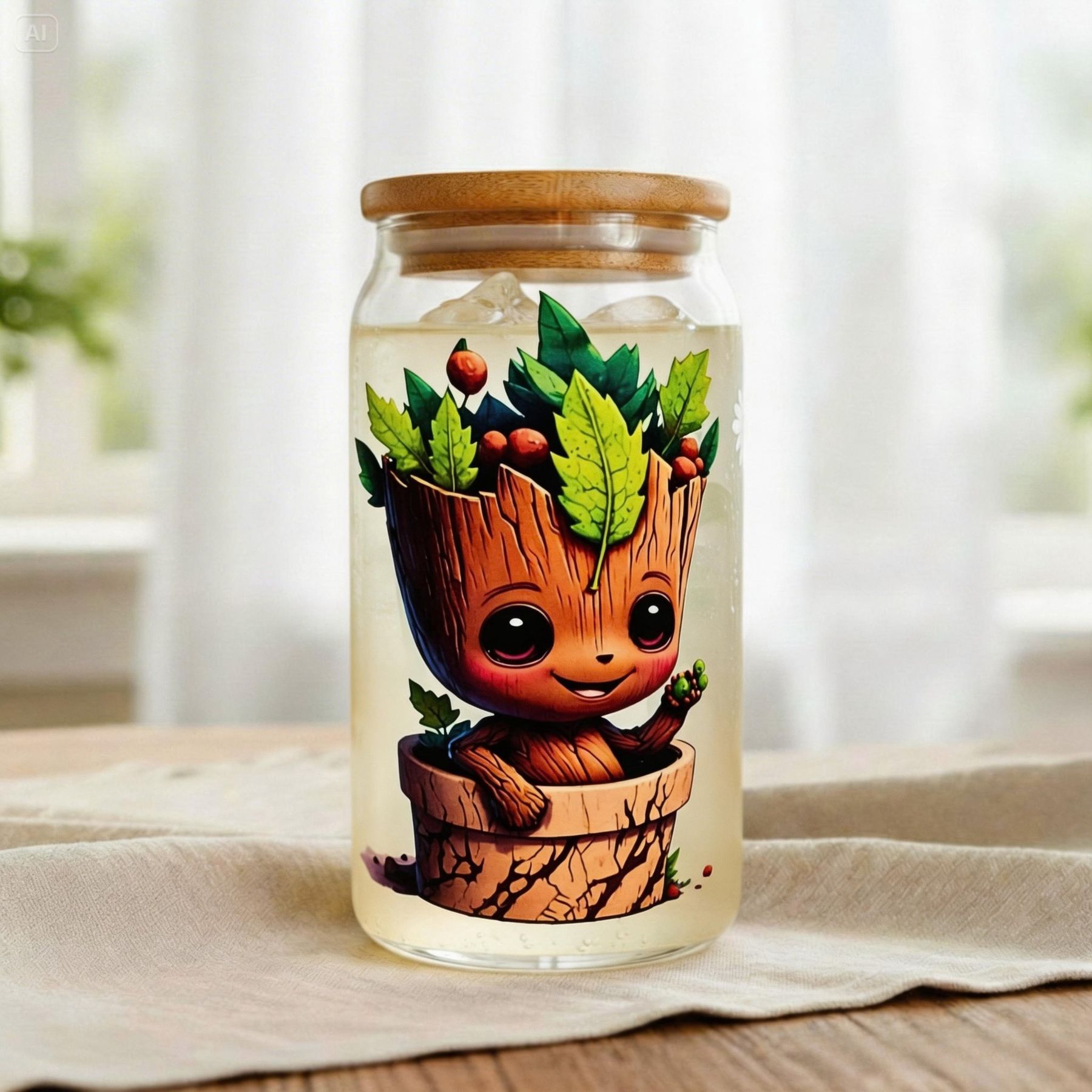Este vaso de cristal con diseño inspirado en el universo de Groot destaca por su estilo divertido, entrañable y lleno de personalidad. Una pieza pensada para fans de los mundos de fantasía y superhéroes que disfrutan rodearse de objetos originales en su día a día.onalidad. Un diseño pensado especialmente para fans de estos personajes y para quienes disfrutan rodearse de objetos que transmiten alegría y nostalgia.