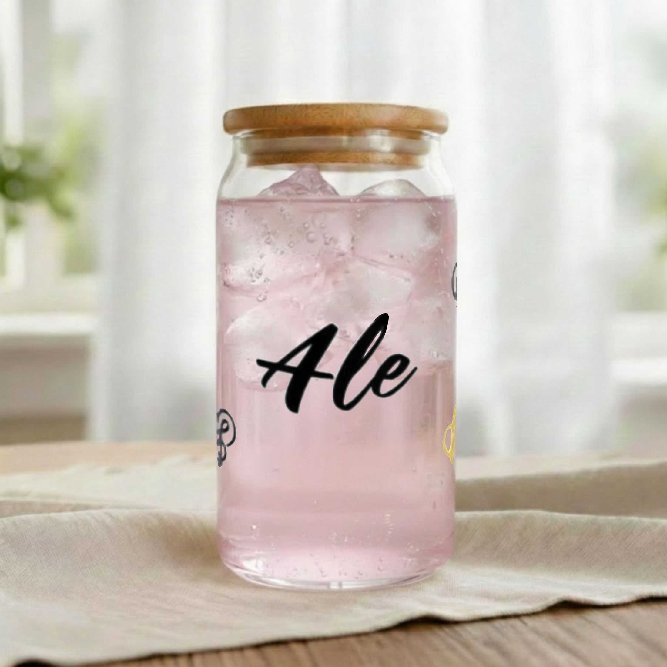 Vaso de cristal personalizado Icono Musical, con tapa y pajita
